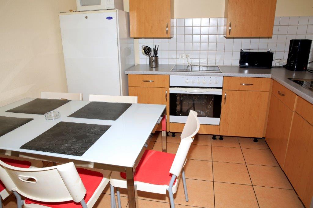3 Zimmer Wohnung mit eingerichteter Einbauküche, zusätzlich zweiter Kühlschrank, Bad mit Dusche und WC, Gäste WC, Balkon. Alle Zimmer sind mit TV Flat ausgestattet. Maximale Belegzahl 6 Personen.Merkmale